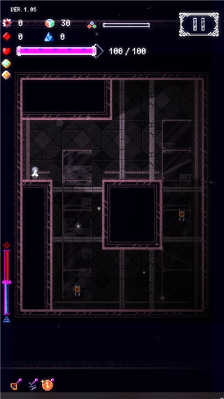 游戏里有很多有趣的玩法,比如利用技能和饰品来搭配战斗策略,每次关卡推进都会解锁新的剧情。你可以通过划动屏幕在地板、墙壁甚至天花板上高速移动,点击和拖动还能切换两种不同的武器。资源管理也很重要,需要玩家灵活应对战斗中的各种情况。