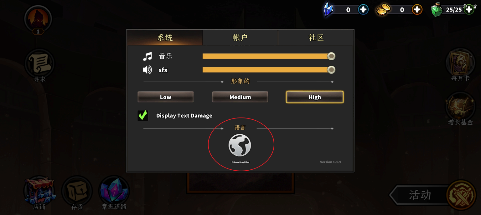 2、如图,点击语言下面的地球图标,选择简体中文即可