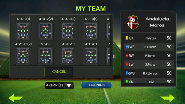 作为新手,一开始可能会有点手忙脚乱,但跟着教程一步步来就OK了。选择球队、安排阵型,然后开始比赛吧!左边控制球员移动,右边有切换球员和发球功能,玩起来还挺有意思的。赢了比赛还能用奖金买更好的球员,提升队伍实力。
