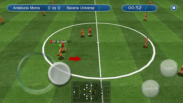 6、左边操纵球员移动和传球方向,右边“SWITCH”切换球员,“SLIDE”点击发球。
