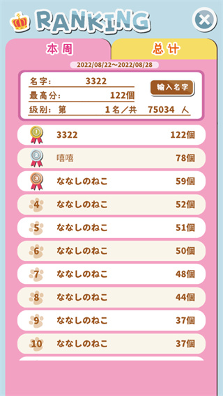 6、点击排名玩家就可以查看本周排行和总计排行;