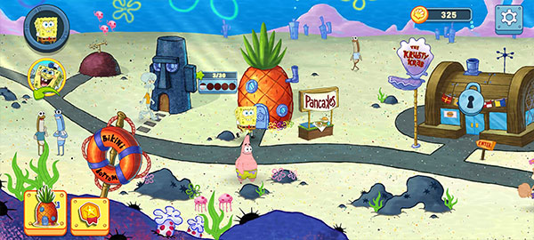 跟随海绵宝宝、蟹老板、章鱼哥、珊迪和派大星,深入探索全新独家故事。通过故事情节进行游戏,解锁新关卡。