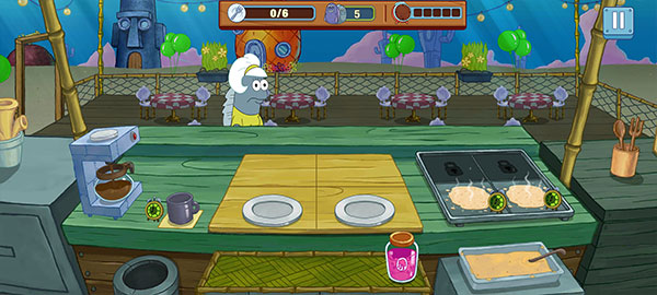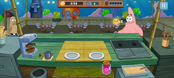 海绵宝宝烹饪大挑战游戏是根据“海绵宝宝”动画改编的一款趣味十足的餐厅模拟经营游戏,英文名为SpongeBob Krusty Cook Off。游戏玩法上十分简单,玩家将在这里扮演海绵宝宝,你需要在有限的时间内制作出正确的美味佳肴,满足比奇堡餐厅的顾客们!同时为了能够尽快的满足顾客订单,玩家需要想办法升级厨房工具,通过提升原食材的单价来强化赚钱的效率,升级烹饪工具缩短烹饪时间…或者购买装饰品来打造最时尚豪华的海底餐厅,吸引更多顾客,通过合理的经营一步步解锁更多烹饪区域和趣味剧情!再搭配上动感的游戏音效和海量的食材道具,玩起来非常休闲!