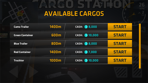而就玩法而言,游戏开始便是熟悉的卡车落地开局,然后玩家需要根据地图和任务进行有目的的驾驶,将货物送到目的地之后就能获得大量的任务奖励,而这些游戏道具可以用来换取更帅性能更好的卡车。当然,任务也有难易之分,所以奖励也会有所差距,但是玩家可以自行选择任务的难度,推荐大家量力而行哦!