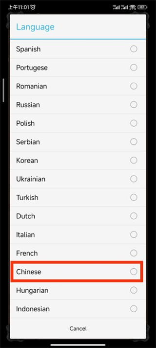 4、在“language”中选择“chinese”即可切换为中文;