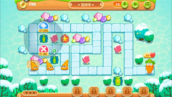 1、保卫萝卜2国际服操作十分简单,只需点击地图中闲置区域就可以安置炮塔。