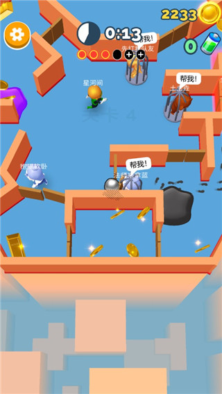 3、在场景中还会出现丰富的道具,通过拾取可获得移速等加成,至少找到4人可完成胜利;