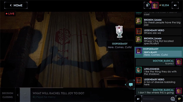 使用 Genvid 的即时互动系统进行新鲜的、令人不安的叙事,使数百万观众能够帮助剧中登场角色生存下来,并改变这些角色的命运。提供跨装置的高画质视觉效果。