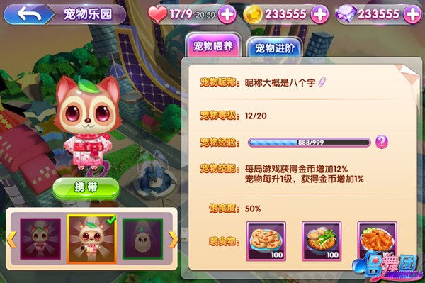 有的小伙伴要问,该怎么把这些小宠物养大呢?很简单,主人每次游戏的时候带着它就可以了。带着宠物进行游戏可以获得宠物经验的哦!我们可爱的小宠物就会升级、长大咯!