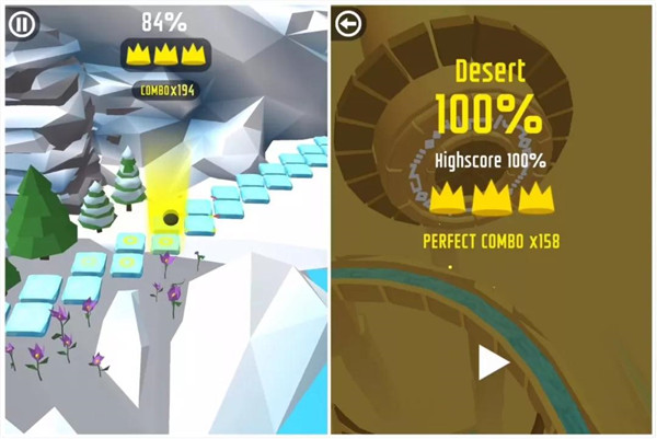 2、《跳舞的球》更是一款音游了,因为减少了部分难度,所以要相应增加一些来维持平衡,游戏中增加的是对拐点准确度的判断还有音乐也很美妙。