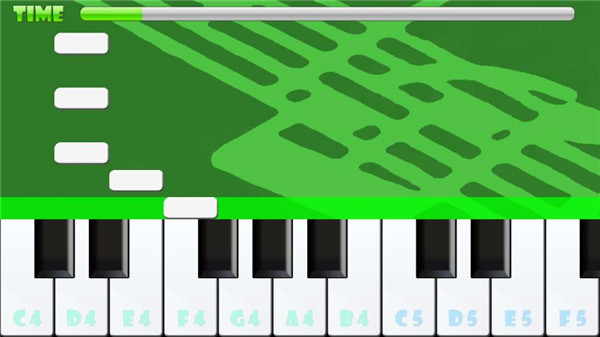 2、当玩家点击了开始之后,琴键便会随着节奏落下来。玩家需要按照顺序点击下落的琴键,每点击一个琴键便会弹奏出一种声音,就像是手指按在钢琴键上一样。当玩家连贯的点击下落的琴键,就会将一首完整的曲子连贯的衔接起来。