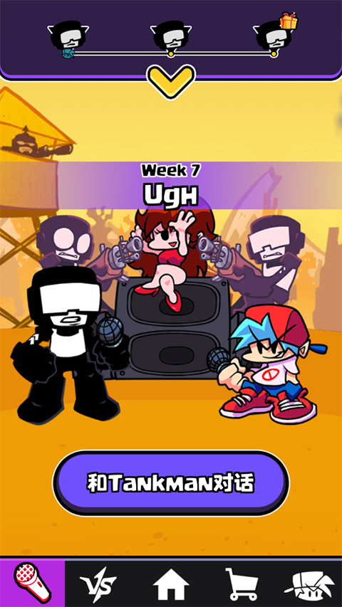 节奏对战游戏中提供了完整周朋克夜和全部模组可玩,高达上百模组歌曲,无需购买全部支持免费游玩,进入界面选择角色以及模组歌曲进入即可,根据随歌曲节奏按对应的方向键就可以了。