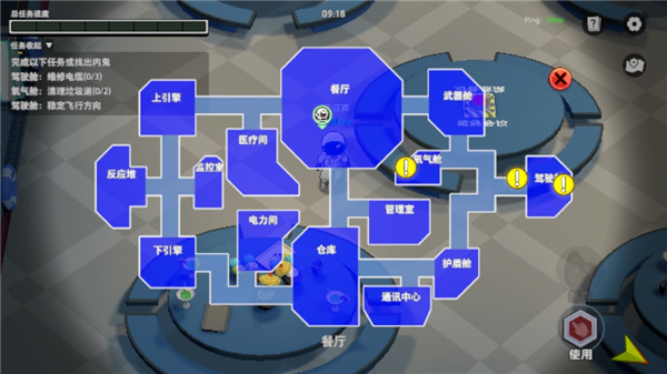 游戏中船员可以通过完成所有的任务获得游戏的胜利,每个人的任务内容略有区别,有的任务也需要合作进行,可以根据地图上的指示,前往即可,任务的形式都很简单,就是一些点点点的操作。需要注意的是尽量避免单独行动,这样被K.O了都没有目击证人。