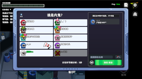 4、任何角色都可以在特定区域开会议,可以投票找内鬼,没有原因的乱指是会被大家投票的。