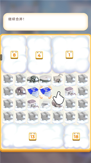 3、接下来玩家可以把相同的物品左右移动合并。