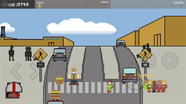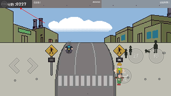 画面是那种像素风格,虽然简单但很有特色。特别是马路上的车来车往,还有那些不减速的“路怒”司机,真的让人有点紧张。游戏节奏挺快的,时间一分一秒流逝,你得眼疾手快地按“过”或“停”,这考验你的反应力和策略。