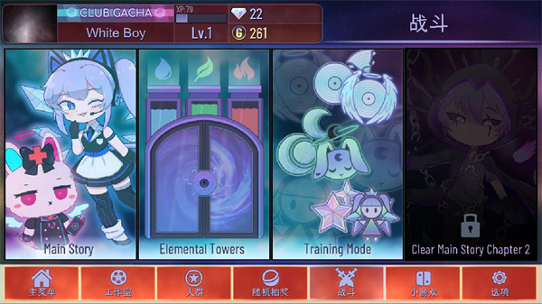 5、在战斗中,进行闯关,分为主线故事、元素塔、训练模式和主线故事四个模式。
