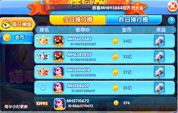 1、直接捕鱼就能参赛,无需报名。排行榜会按捕鱼获得的金币进行排名
