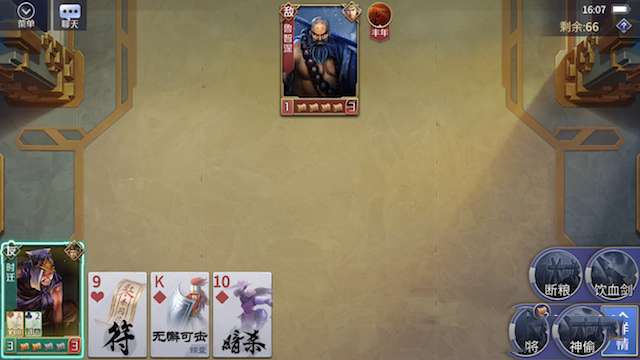 其次是进攻马,它的功能是用玩家与其他角色的距离减1,一般直接装备上就可以。如果有多余的进攻马我们就需要观察一下它们的花色,比如我们使用的是李煜的话就最好留一个黑马在手中当作判定牌,手牌溢出再将黑桃马换到装备区。