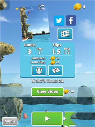 当然,如果玩家不小心让跳水运动员撞到旁边的石头上,就会Game Over。