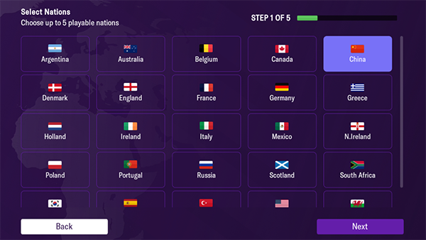 1、在本站下载安装游戏后,会提示下载图片,这里选择否。然后我们就可以看到游戏主界面,我们点击new game 开始游戏。游戏创建阶段分为5步。第一步,我们需要先选择国家和对应地区的联赛。