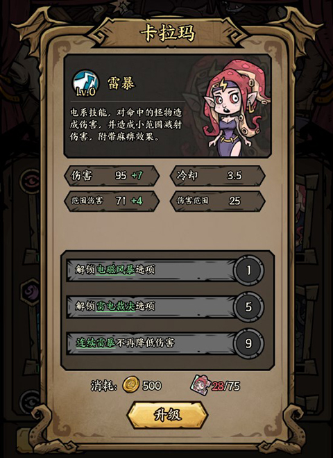 召唤雷暴,伤害性技能,会造成范围伤害,升级后可以提升雷暴数量和伤害。