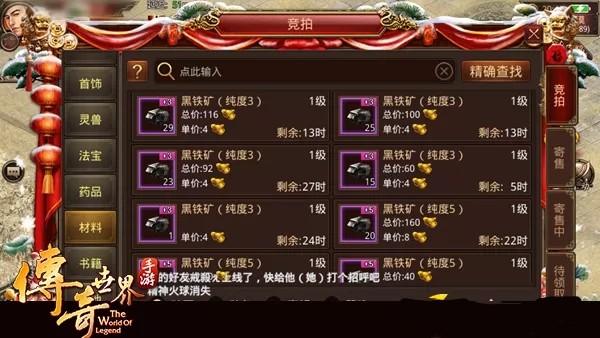 这些高阶道具最佳的获取途径就是拍卖行,在当前的市场情况下,拍卖行的黑铁矿是性价比最高的。+3黑铁矿仅售价4元宝,+5黑铁矿也仅售价8元宝!玩家不管强化什么级别的装备,拍卖行都是最好的选择。