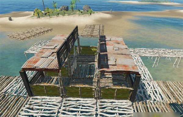 4、屋顶船基:两片,重点是大小,这里长宽都是3格房子所以我做了两片2*7的船基。这样略大于屋子架上去才有屋檐的效果。