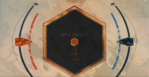 1、操作屏幕中央的六边形盘面与两侧的弧形轨道,在各式音符的交织和旋转中,充分体会演奏的乐趣