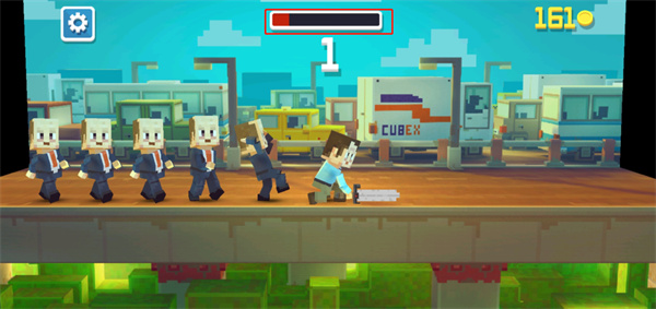 3、游戏上方还有一个进度条,进度条没了就游戏结束,或者是被敌人攻击游戏也会结束;