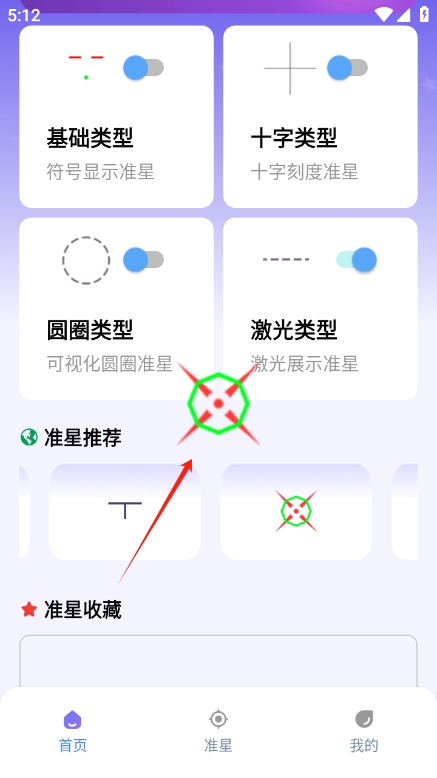 支持多种准星样式(基础、十字、圆圈、激光等),并可自定义颜色、透明度、大小、角度和刻度。用户还能通过文本符号或图标图片切换准星,提供超过100种符号和80种图标选择。此外,支持从相册导入图片作为准星,满足个性化需求。