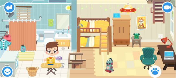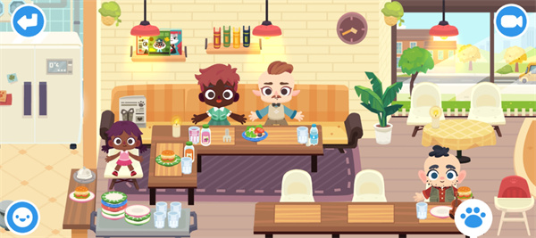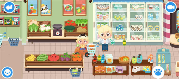 1、双击打开熊猫博士小镇商场官方版游戏,你可以探索不同的房间,像是从客厅移动到厨房,就会见到里头放着大量的食物道具,可吃可煮;