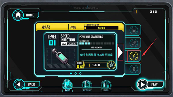 7、强化完成后,可以选择下方的难度,然后点击PLAY就可以开始新的一局游戏,难度分为三个等级,从低到高分别为EASY简单、MEDIUM中等、HARD困难。