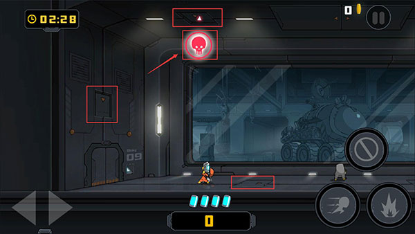 10、关卡场景内会有若干个标有黄色三角形的舱门,这些舱门是怪物们的出现口,当怪物将要从舱门出现的时候,会有红色警示标志,请保持一定的安全距离。