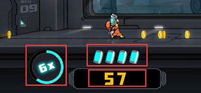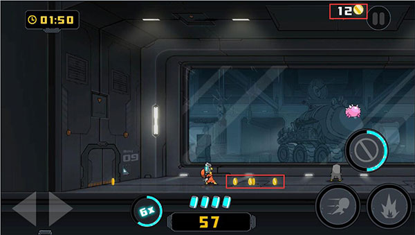 6、右上角显示的是玩家在关卡中获得的金币数量,拾取金币不光可以增加游戏分数,还可以在通关后升级角色属性,但要注意的是,掉落的金币有时间限制,请尽快拾取。