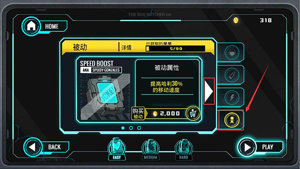 6、被动:目前显示的是被动的各项数据,包括被动属性和购买所需金币,点击右侧箭头可以切换其他被动进行购买操作。