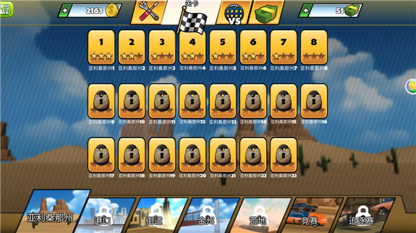 3、玩家需要驾驶不同的赛车形象完成接下来的闯关挑战,相关的场景方面设定的内容都是完全不一样的