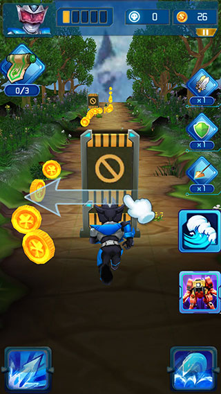 小技巧:前期购买勇士的专属武器,在来不及躲过障碍的时候可以使用武器把正前方的障碍破坏掉,不过要注意武器的使用时间有长的冷却时间。