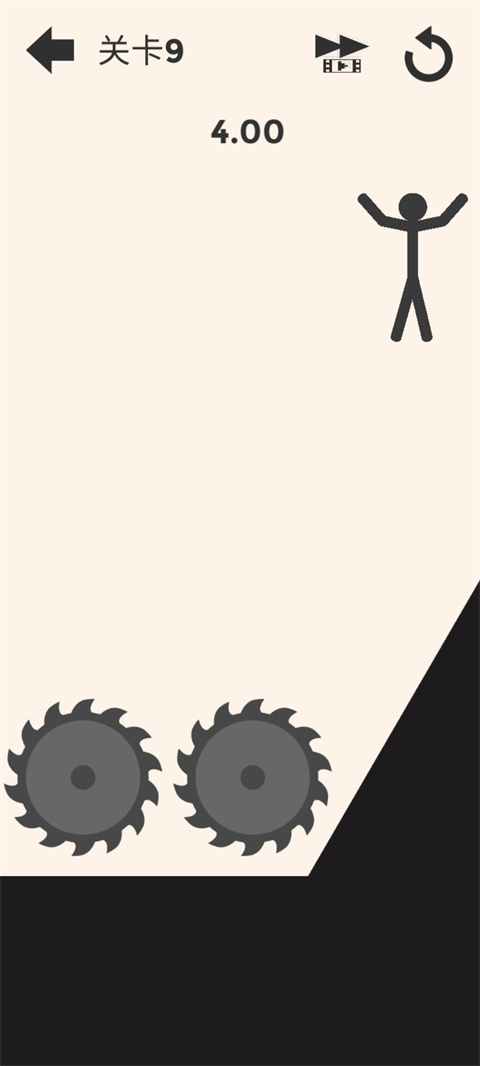 6、倒计时结束火柴人不用受到伤害即可通过,通过后玩家可以点击下一关进行游玩;