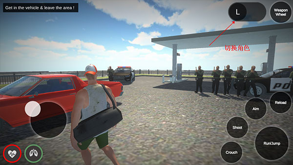 1、打开给他爱6最新版后,进入开始任务,右下角是跳跃或者奔跑、拾取、下蹲、射击等操作按钮。