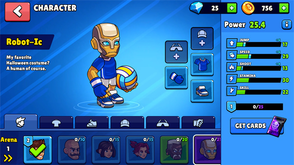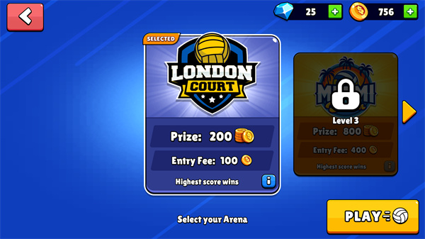 排球竞技场是一款好玩的体育竞技类游戏,英文名又称Volleyball Arena。游戏内玩家将会在竞技场里展开一场紧张刺激的排球比赛,1v1公平对决,玩家只需要操控人物来进行挑战,没有什么复杂的操作,新手都可轻松上手。而且游戏内设有众多人物的服装与形象,并且都是免费获得的,只需要玩家慢慢在游戏内收集道具,当道具收集的数量足够时,就可以前往兑换。最重要的是,这些服装与形象都可以增强玩家在游戏内的能力,比如跳跃高度、移动速度等,助力玩家轻松获取游戏的胜利。
