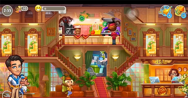 除了了解员工的任务外,了解游戏的三个主要目标也非常重要。首先是赚取硬币,完成每个级别时赚取和保存硬币,这将帮助你升级设备并重新装修酒店,为所有客人提供更好和更轻松的服务。其次是接待客人,提供最好的服务来让客人满意。最后,朝着微笑的目标前进,快速、高效地为客人服务,让客人微笑,这将在每个级别结束时带来额外的收入。
