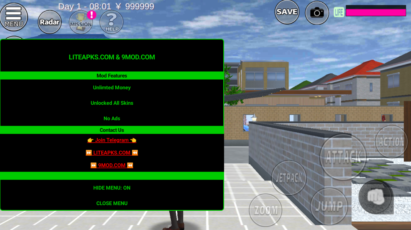 本次带来的樱花校园模拟器内置MOD菜单版是樱花校园模拟器的破解版,内置模组菜单,一键解锁全角色、无限金钱等功能。进入游戏探索日本一个迷人而温馨的小镇,干净的街道和友好的人们掩盖了一个只有内行人知道的隐藏秘密:这个地方是一个肆无忌惮的疯狂之地!穿上校服,前往世界上最疯狂的学校,结交朋友,去上课,或者加入帮派,参加荒谬的近战斗殴,这在你疯狂的母校每天都在发生。