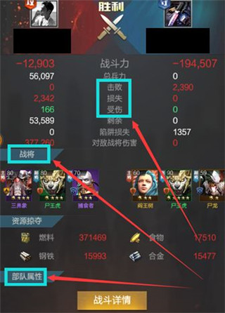 战斗力损失,这些只是暂时的。后面可以通过治疗伤兵和战将来恢复