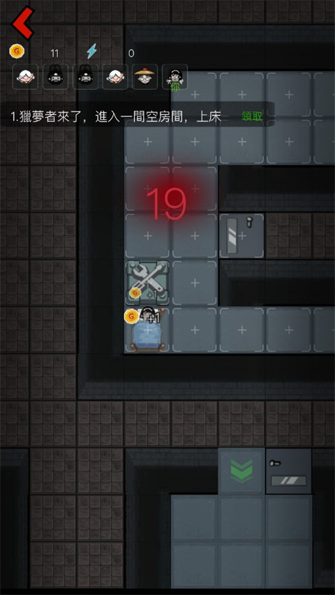 5、然后还可以通过升级小床,门来防止猎梦者进入,同时还可以建造多种道具帮助自己击退猎梦者;