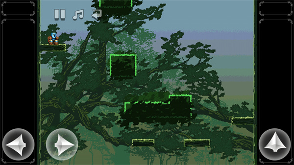 跳跃之王手机版游戏虽然按键简单,但音乐还是比较丰富的,背景音乐充满各种动听音效,像是夜晚虫子叫声,让人非常放松。而其跳跃的音效,包括撞到墙上的声音、从高处不小心掉落摔倒的啪的一声的音效,都非常有特色,复古的2D像素画面搭配上同样透着一股尘封气息的BGM,如古钟般厚重,让这个游戏多了一些魔性和趣味性。最后是其左上方还给玩家留了一个关闭声音的按键,非常的人性化。