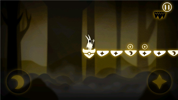 游戏的背景设定在一个神秘世界中,这是一个小女孩梦境中的世界。她不断地追逐光芒,想要摆脱这无尽的梦魇。但是在梦境中充满了各种隐藏的危险,玩家需要利用月与星的“咒语”来引导她躲避危险,到达梦境的终点。游戏的画风整体风格看上去是那种比较纯粹的简约画风,看上去比较简单,几点简单的线条勾勒,也没有用太多的色彩点缀,但是整体给人的感觉却是比较温馨、舒服的感觉,恰到好处的背景点缀,昏暗的背景下,犹如夕阳映照下的森林,朦朦胧胧更能体现梦境之感。