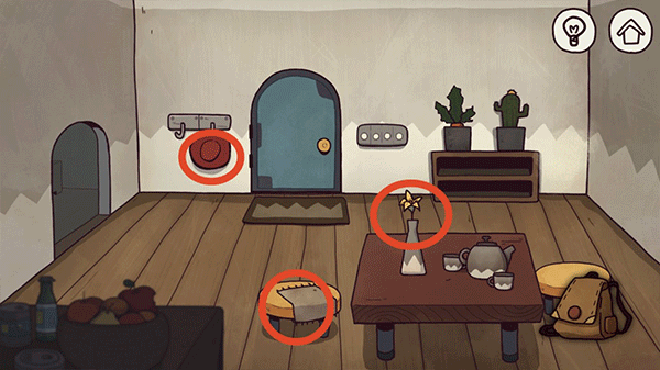 5、拾取凳子上的【抹布】,桌子上花瓶中的【黄色小花】,多次点击墙左边卦着的红色帽子,帽子掉下后点击“彩蛋”,获得“帽子戏法”成就。