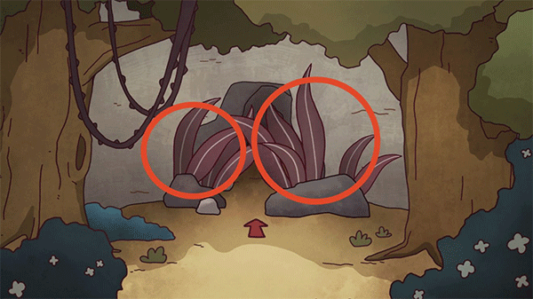 1、点击洞口两边红色的草,漏出山洞后,点击进入。