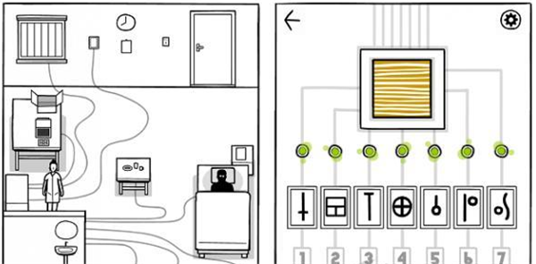 3、有八根线,连接着八个地方,但我们只需要七个密码,这个时候要打开电视,电视上一直浮动的线条会向你展示每一个对应密码所在的位置,最终答案如下图所示。